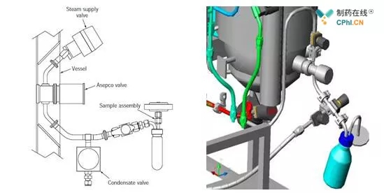 生物反應(yīng)器的生物安全等級(jí)(BL)由較終用戶依照相關(guān)標(biāo)準(zhǔn)制定,各房間的操作要求(例如取樣廢氣排放,凝聚物和培養(yǎng)基廢棄處理)都要保證操作者和環(huán)境的安全。根據(jù)病原對微生物活細(xì)胞的危險(xiǎn),生物安全等級(jí)(BL)分成3個(gè)安全等級(jí)空間,包括BL1-LS、BL2-LS和BL3-LS,病原危險(xiǎn)越高、在設(shè)計(jì)和設(shè)備運(yùn)行時(shí)要求房間的安全等級(jí)就越高。對于等級(jí)BL2和BL3的產(chǎn)品,添加輔料、取樣和收獲需使用密閉操作系統(tǒng),污染凝聚物需收集到指定的滅活罐進(jìn)行后續(xù)處理,培養(yǎng)結(jié)束后,生物反應(yīng)器的罐體和管道需得到及時(shí)的清洗與滅菌處理。為避免取樣操作帶來雜菌污染,側(cè)壁取樣閥需采用封閉的取樣裝置(圖2)。